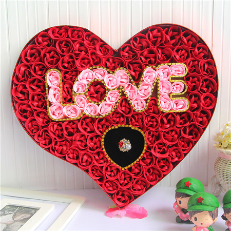 香皂花:紅色,100朵love+戒指香皂花禮盒;尺寸:約40.5*36*4.8CM