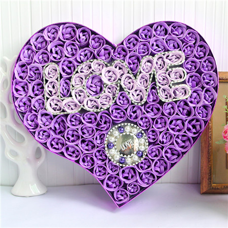 香皂花:紫色,100朵love+手鏈香皂花禮盒;尺寸:約40.5*36*4.8CM