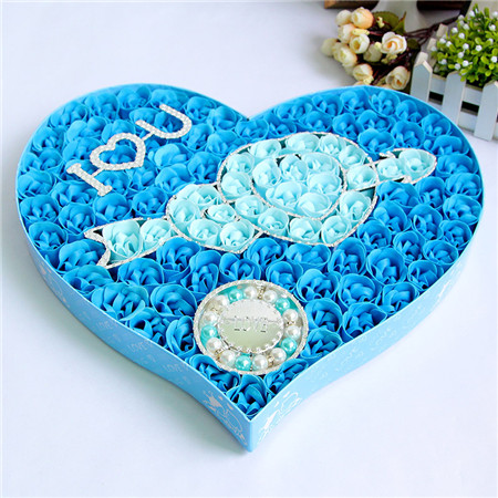 香皂花:藍(lán)色,100朵一見鐘情+手鏈香皂花禮盒;尺寸:寬約40.5com,高約36com,厚約4.5com