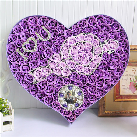 香皂花:紫色,100朵一見鐘情+手鏈香皂花禮盒;尺寸:寬約40.5com,高約36com,厚約4.5com