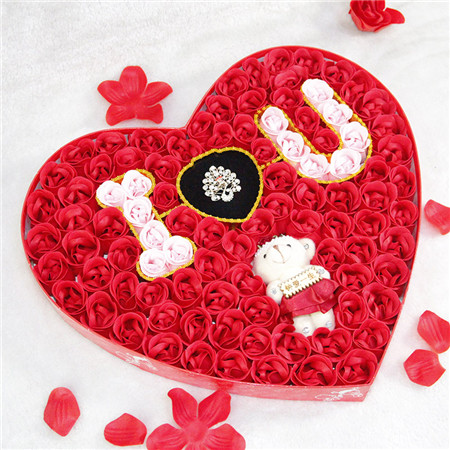 香皂花:紅色,100朵IU浪漫小熊+戒指香皂花禮盒;尺寸:40*35*4.5com