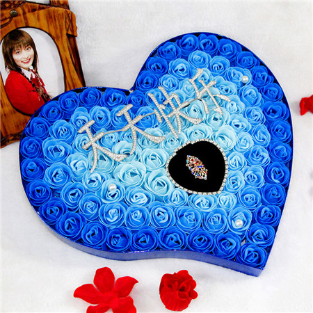 香皂花:漸變藍,100朵天天快樂+戒指香皂花禮盒;尺寸:40*37*4.5com