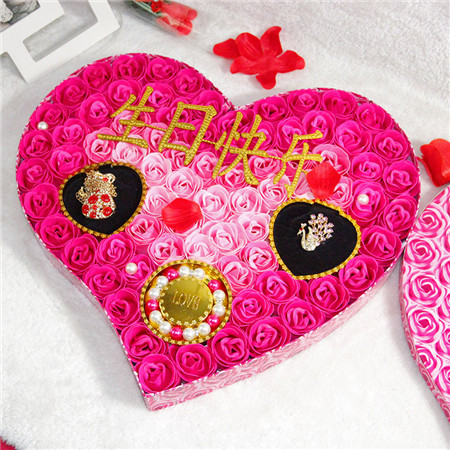 香皂花:漸變色,100朵漸變生日快樂+三寶香皂花禮盒;尺寸:41*38*5com