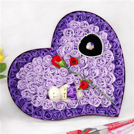 香皂花:紫色,92朵香皂花+1枝花+小熊+戒指;尺寸:42*40*5cm;