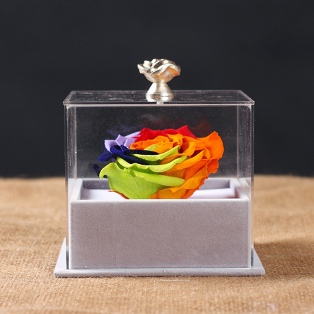 主材:單朵巨型玫瑰進口,10CM 尺寸: 灰色亞克力透明盒,15*15*12.5CM