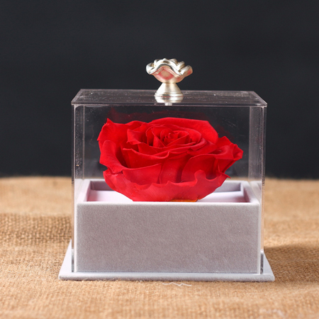 主材:單朵巨型玫瑰進口,10CM 尺寸: 灰色亞克力透明盒,15*15*12.5CM