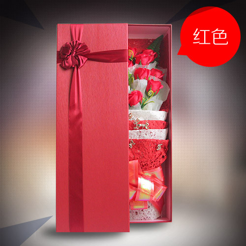 11朵紅色香皂花禮盒,紅色禮盒包裝。