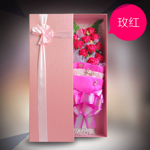 11朵玫紅色香皂花禮盒,玫紅禮盒包裝。