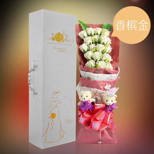 19朵香檳色香皂花花束 高檔禮盒包裝。