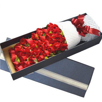 33朵紅玫瑰 白色包裝 紅色蝴蝶結扎編 高檔禮盒盛放