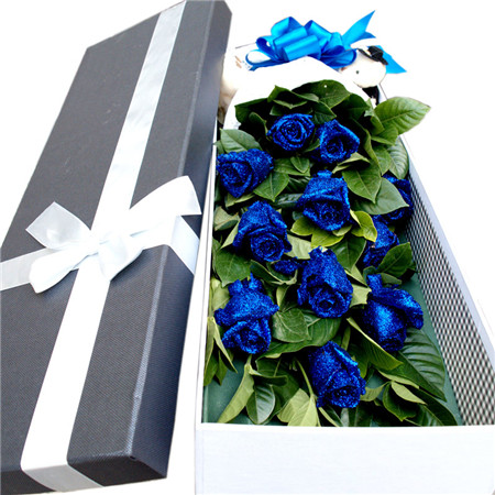 11支藍色妖姬 梔子葉搭配 禮盒包裝 2個小熊