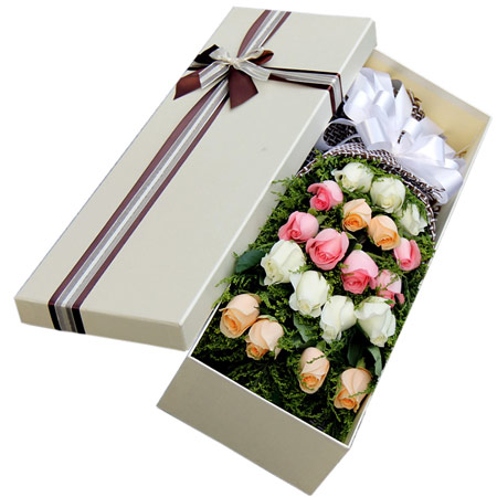 材料包裝: 19朵玫瑰混搭,禮盒包裝