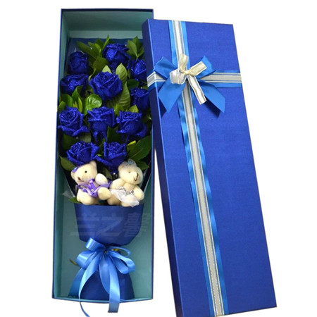 11支藍色妖姬 黃英搭配 2只小熊 禮盒包裝
