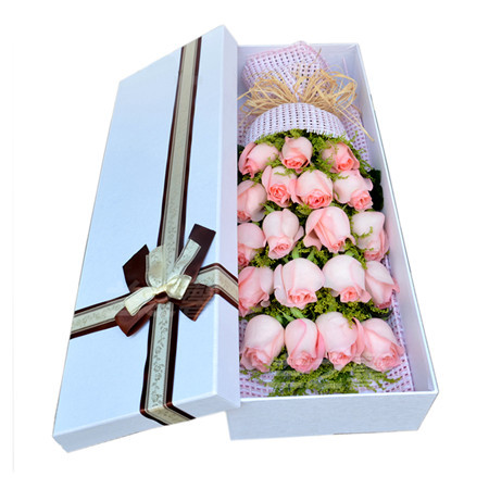 商品簡介:19支粉玫瑰黃鶯搭配 禮盒包裝