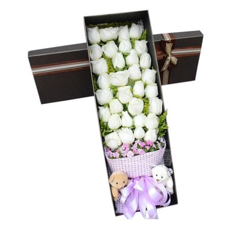 | 材料包裝: | 33朵白玫瑰 2只小熊 禮盒包裝 | | 相關花語: | 我緣起不滅的憧憬,雖未經桑田滄海的變遷,也不懂得何為永遠,但希望這個世間真有永恒,我的心屬… | | 配送范圍: | 本產品全國各地均可送達 | | 下單備注: | 鮮花產品您至少應提前3小時下訂單,我們保證按時送達; 為了能夠有充分的時間準備,我們建議您提前預訂!。 | | 質量說明: | 由于各個藝師手藝不同,實際送出的鮮花商品有部分可能和圖片不太一樣,也屬正常,但本站承諾,數量和種類一定和圖片上一樣,并且比圖片上的還要好。