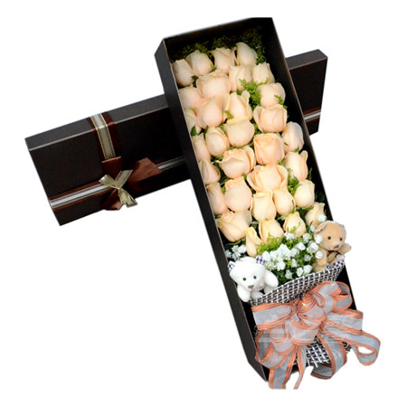 33朵香檳玫瑰,2只小熊 黃鶯綠葉,精美禮盒