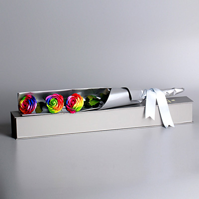 商品簡介:3支七彩香皂花,9*9*73CM禮盒裝