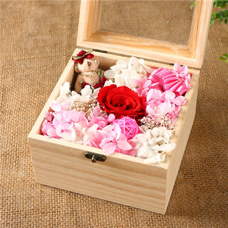 商品簡介:保鮮花 紅色 1花+1熊 木盒裝