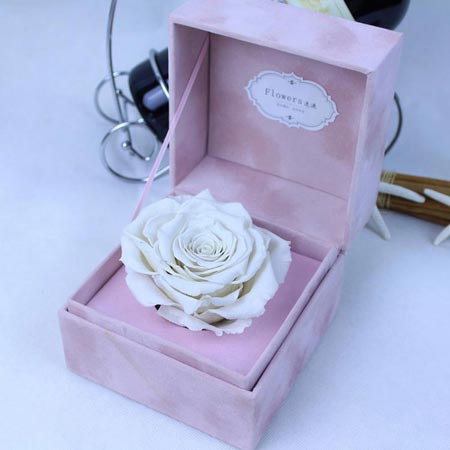 材料包裝: 花材:1朵白色玫瑰;包裝:精美禮盒;