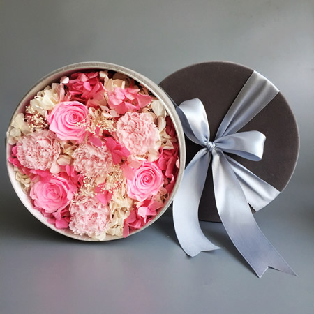 材料包裝: 保鮮花:主材:3朵5-6CM玫瑰,4朵康乃馨。配材:滿天星,繡球;尺寸:20.5*11cm
