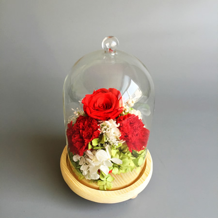 材料包裝: 保鮮花:主材:1朵5-6CM玫瑰,2朵康乃馨;配材:滿天星,繡球;尺寸:直徑14CM,高20CM
