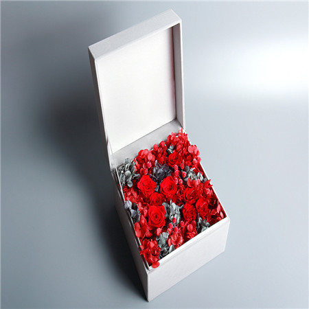 商品簡介:長23*寬23*高15 3朵大玫瑰 5朵小玫瑰 配草:滿天星 繡球。