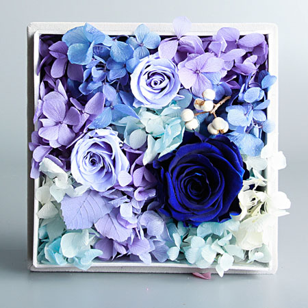 商品簡介:主材:1朵5-6CM玫瑰,2朵2-3CM玫瑰;配材:繡球,滿天星;尺寸:15*15*12cm