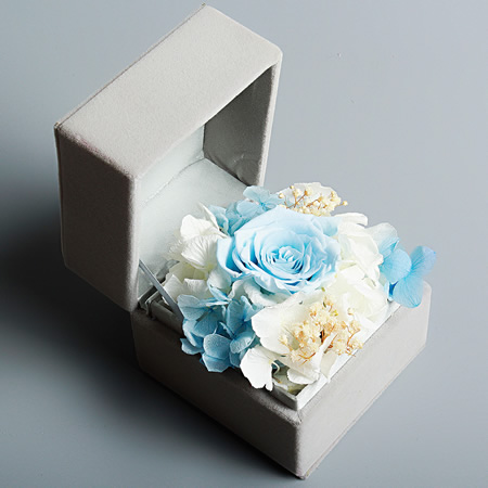 主材:1朵4-5CM玫瑰;配材:繡球,滿天星;尺寸:8*8*7cm盒子