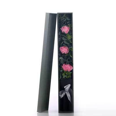材料包裝: 產品簡稱:3朵粉色香皂花長條盒花束,尺寸:尺寸:65*10*8CM