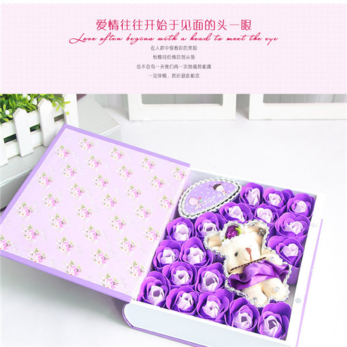 商品簡介:18朵紫色香皂花禮盒。小熊書本款教師節(jié)快樂