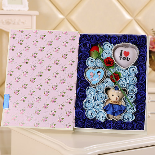 商品簡介:香皂花:51朵書本一枝花+小熊 燈 藍色