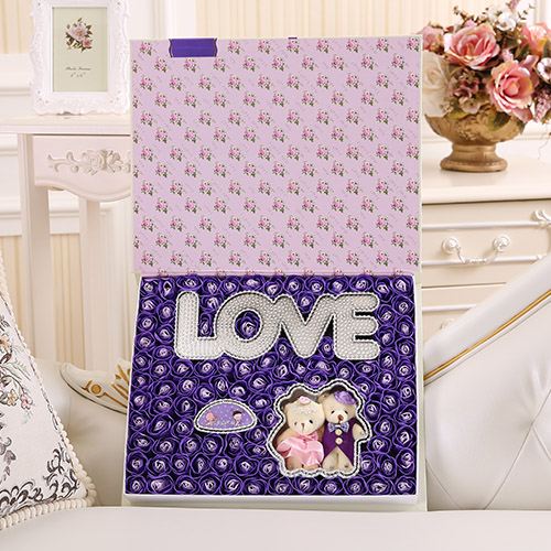 香皂花:99朵書本橫版LOVE+抱熊 紫色禮盒