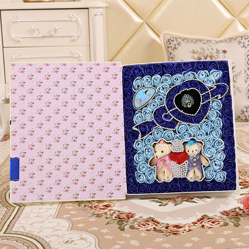 香皂花:99朵書本一箭穿心+牽手熊 藍色