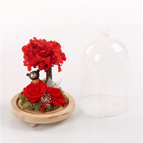 商品名稱:保鮮花玻璃罩樹脂熊紅