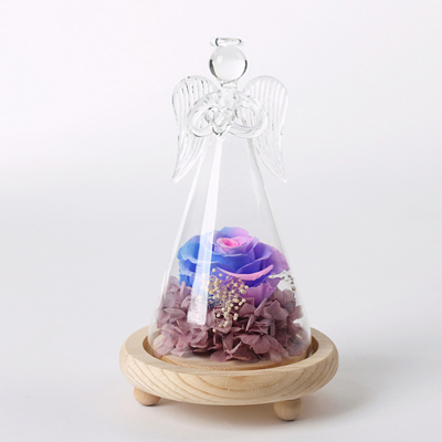 主材:1朵藍粉漸變玫瑰,配材:繡球花,尺寸:天使瓶