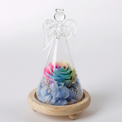 商品簡介:主材:1朵七彩永生玫瑰,配材:繡球花,尺寸:天使瓶