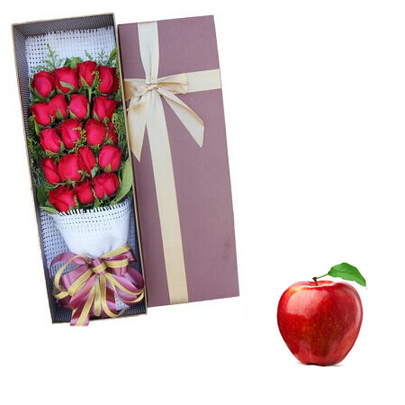 19枝紅玫瑰+1個(gè)平安果,配草 白沙搭配 咖啡色禮盒