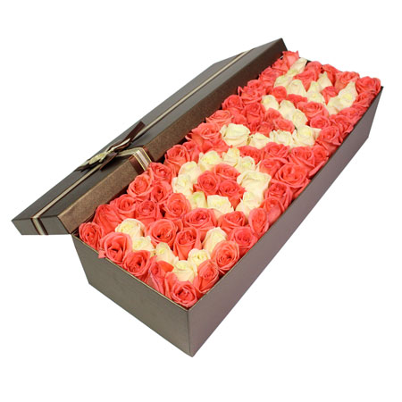 99支粉,白玫瑰,白玫瑰擺出LOVE效果,禮盒包裝(禮盒顏色隨機,以當地發貨為準)