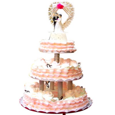 | 材料包裝: | [材 料]:三層婚禮水果蛋糕,中間夾心水果,表面結婚公仔,蛋糕尺寸:16寸+12寸+8寸,總高度約為:60CM左右 | | 相關花語: | 多層蛋糕,上下兩層的尺寸相差最少4英寸。如:8寸至少疊12寸,而不能疊10寸。兩層蛋糕標價按照上層尺寸。