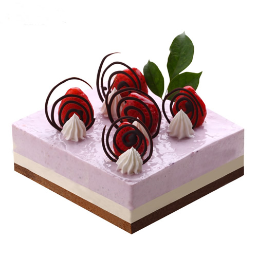 商品簡介:芝士蛋糕,藍莓芝士夾心,表面草莓巧克力裝飾