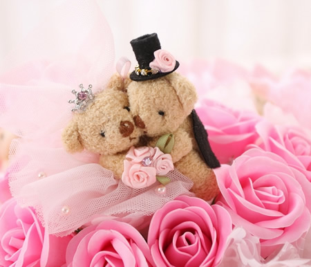 商品簡介:公仔數量:1對婚紗高檔熊+9只小熊+9朵香皂花 材料:蕾絲,紗,卷紙,香皂,鉆飾,絲帶 尺寸:高45CM,直徑40CM
